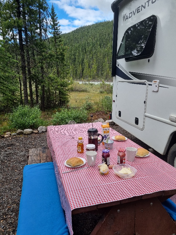 Happy Canady Day, Happy Birthday Holger! Heute war Holgers Geburtstag und Nationalfeiertag in Kanada. Nach einem gemütlichen Geburtstagsfrühstück vor dem Camper mit Blick auf den Saskatchewan River gings los zum 2.Teil des Icefields Parkway.