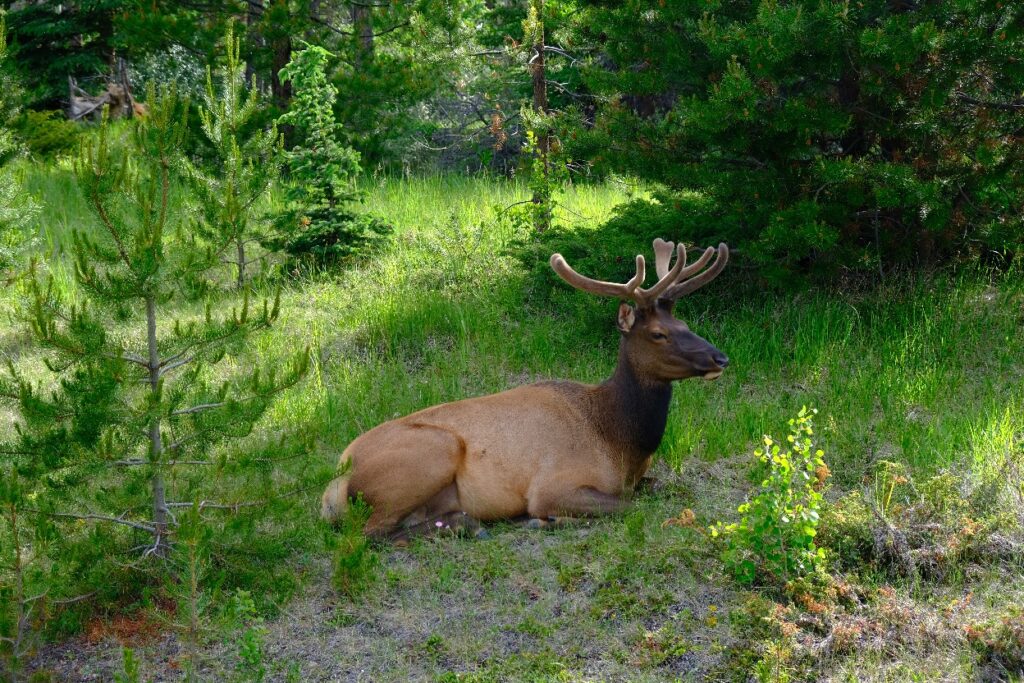 Kurz vor Jasper, dem Ort unserer nächsten 3 Nächte sahen wir noch 2 Tiere am Strassenrand. Wir überlegen noch, ob es Deers oder Elks waren.