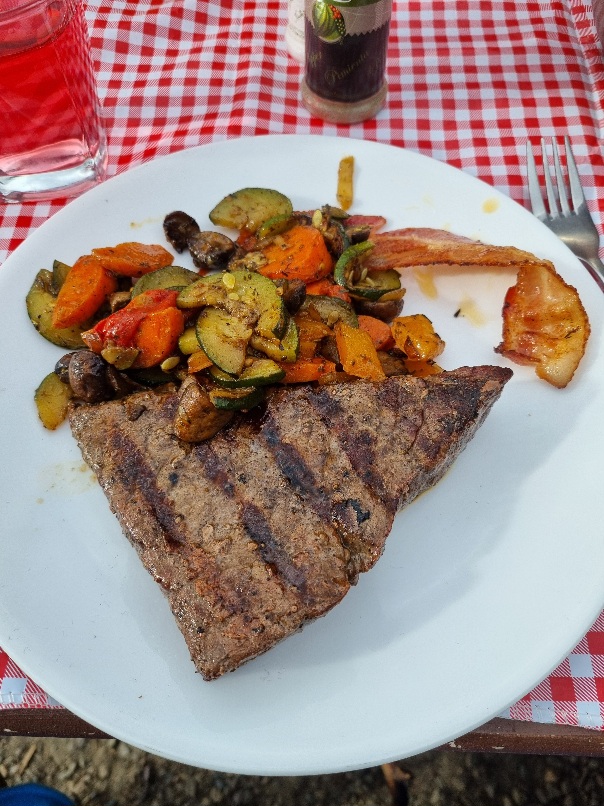 Nach dem Rundgang zu allen 5 Seen kehrten wir zum Camper zurück und nun gibt es Steak und Grillgemüse am Lagerfeuer.