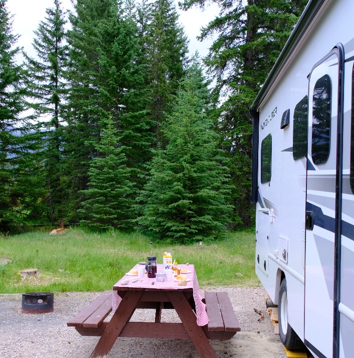 Frühstück machten wir heute wieder vor dem Camper, begleitet von einem weiblichen Elk (Wapiti), welches sich neben unserem Camper niedergelassen hatte.