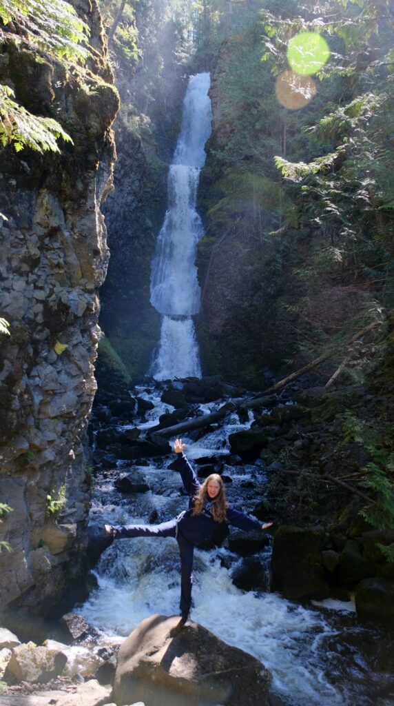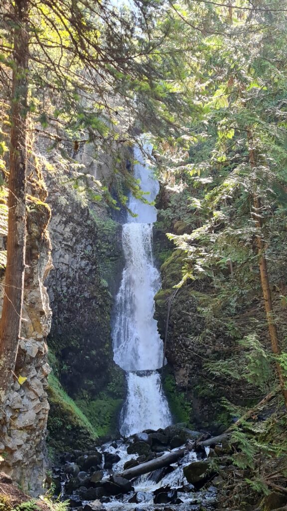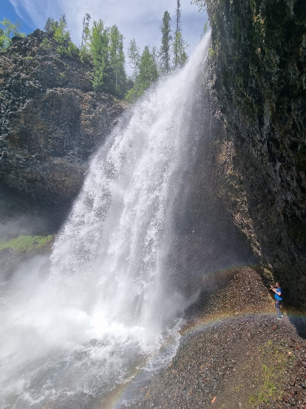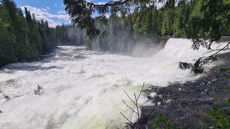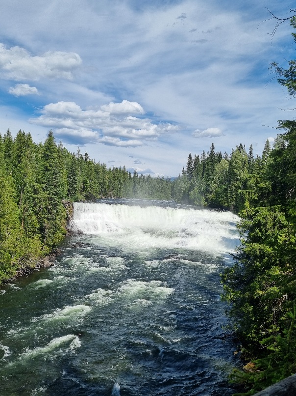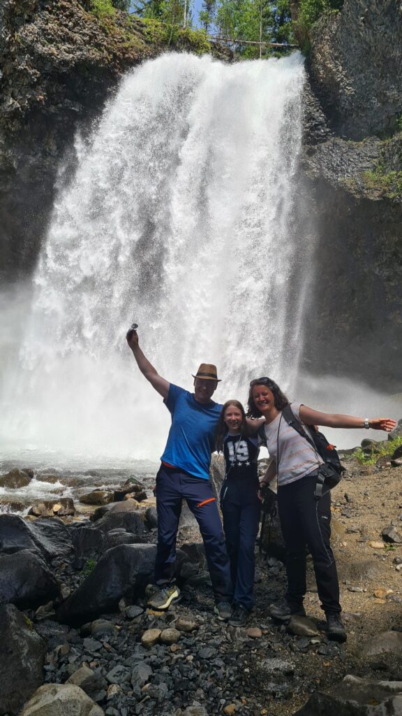 Los gings 9Uhr von Blue River in den Wells Gray Park. In dem Gebiet gibt es 42 Wasserfälle. Wir haben uns die „schönsten“ 5 herausgesucht und los gings. Zunächst hielten wir am Triple Decker. Dieser Wasserfall führt über 3 Treppen hinab.