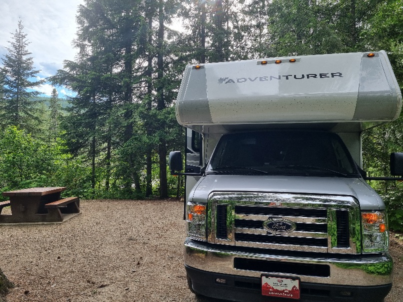 Geplättet von den vielen Eindrücken machten wir uns auf den Weg zum Campingplatz „Clearwater Lake“. Der Weg dorthin führte über eine sogenannte Gravel Road. Das ist eine „Schotterpiste“. Wir wussten dies im Vorfeld und packten im Camper alles gut und sicher in die Schränke. Holger fuhr die 20km durchschnittlich mit Tempo 40 und wich gekonnt den größten Schlaglöchern aus. Am Ende hatten wir uns diese Strasse schlimmer vorgestellt. Unser Stellplatz liegt herrlich ruhig in der Natur, direkt am Clearwater Lake.