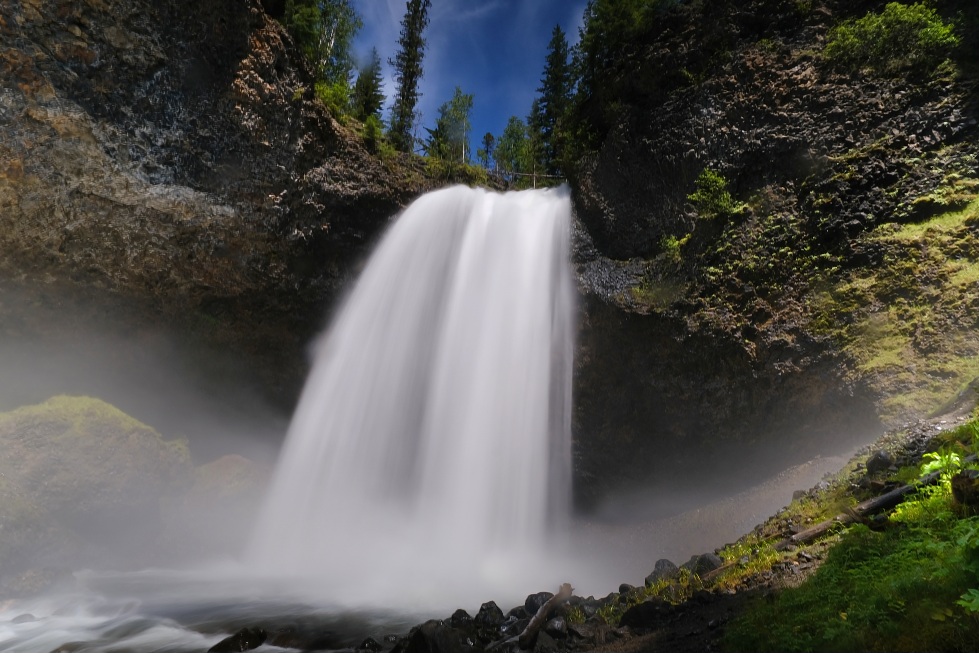 Nun wurde es Zeit für den letzten Wasserfall an diesem Tag, dieser war auch der Spektakulärste. Das Wasser des Helmcken Fall stürzt hier 141m in die Tiefe. Ich glaube so einen großen Wasserfall habe ich noch nicht gesehen. Gewaltige Wassermassen stürzen dort hinab und ergaben eine riesige Gischt beim Aufprall.