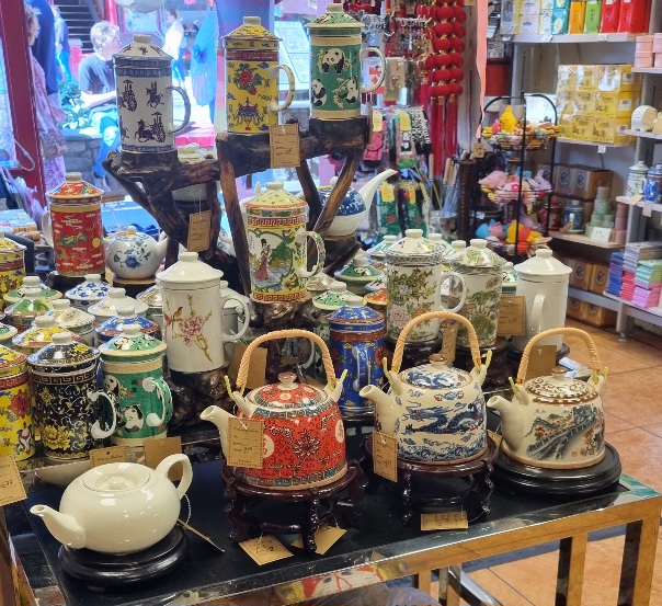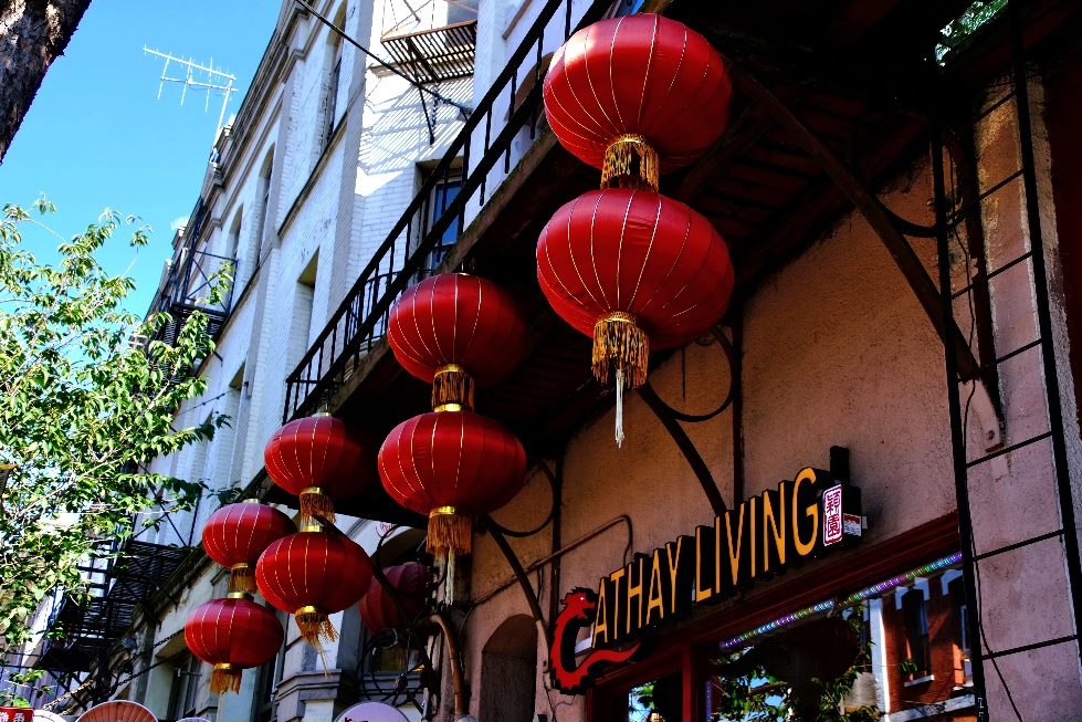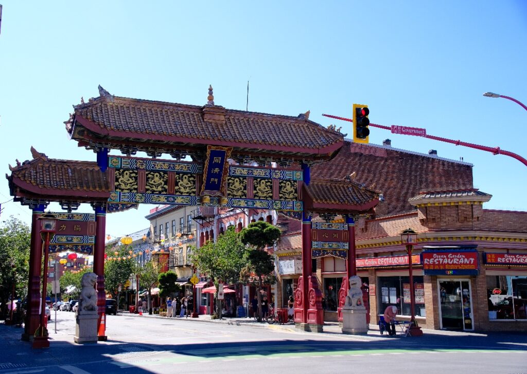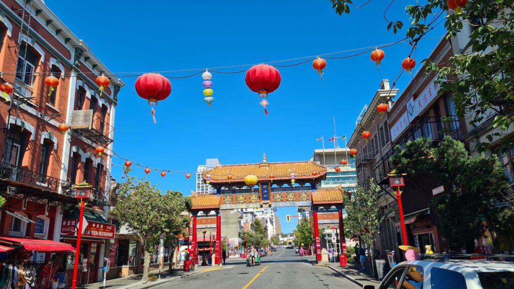 Nachdem die Orcas weitergezogen waren, machten wir uns auf den Rückweg. Wieder am Hafen angekommen, entschieden wir uns noch nach China Town zu laufen. China Town ist ein Stadtteil, der hauptsächlich durch chinesische Einwanderer geprägt ist. Zur Zeit des großen Eisenbahnbaus zwischen 1870 und 1900 sind sehr viele Chinesen nach Nordamerika umgesiedelt und haben als billige Arbeitskräfte insbesondere den Bau des Schienennetzes vorangetrieben. Daher gibt es in vielen amerikanischen und kanadischen Städten chinesische Stadtviertel. Chinatown von Victoria ist die Älteste von Kanada. Wir schlenderten durch kleine Gassen und besuchten einige kleine Läden.
