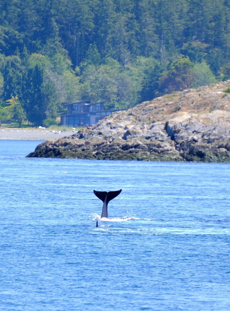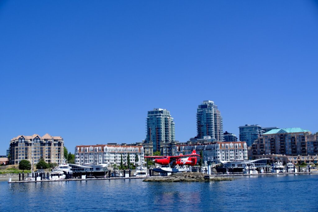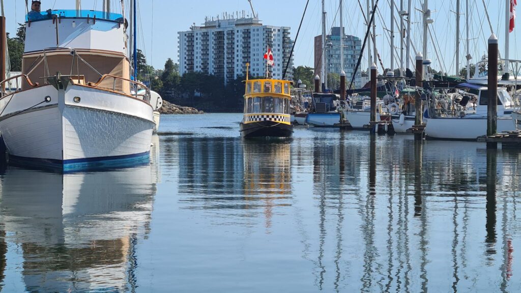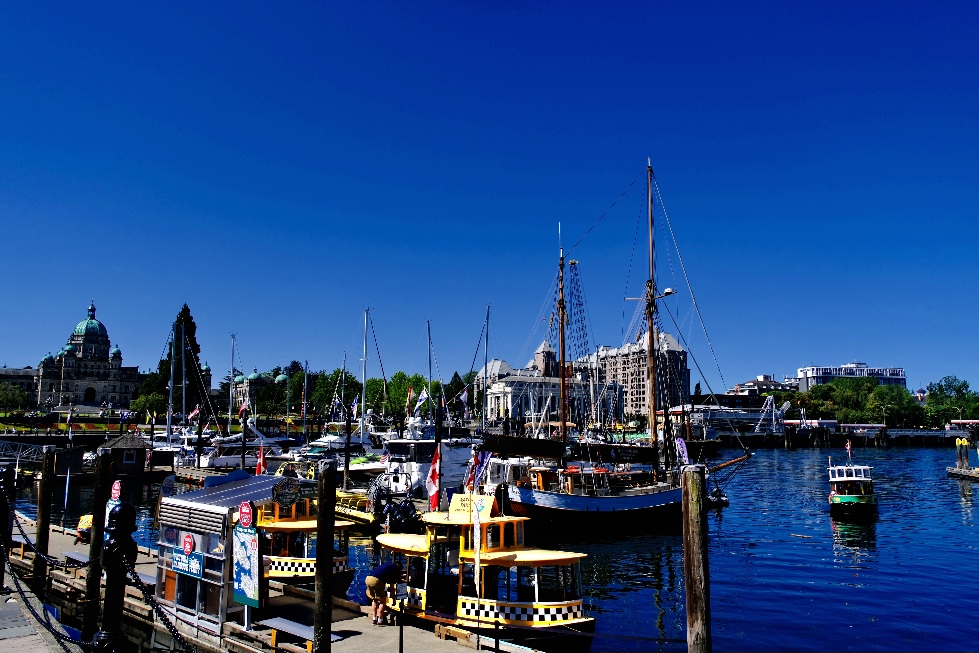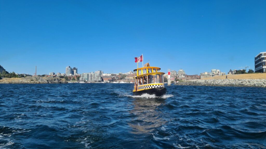 Unser Tages-Highlight in Victoria sollte eine Whale-Watching Tour sein. Nachdem wir in anderen Urlauben Buckelwale und Delphine beobachtet haben, sollten es heute Orcas (Killerwale) sein. Mit einem Wassertaxi schipperten wir von einer Anlegestelle (West Bay) ganz in der Nähe unseres Campers zum Inner Harbour (Hafen im Stadtzentrum). In ein Wassertaxi passen maximal 12Personen rein. Es sind kleine wendige Boote und der Kapitän vom Boot erzählt während der Fahrt noch einige Informationen über den Hafen. Insbesondere, dass heute noch zwei Kreuzfahrtschiffe anlegen werden und wir vielleicht eins sehen können, wenn unsere Bootstour zu den Walen startet. Zudem erklärte er uns, dass es sich bei den permanent startenden und landenden Wasserflugzeugen hauptsächlich um Linienflüge nach Vancouver und Seatle (USA) handelt, nebenTouristenrundflügen.