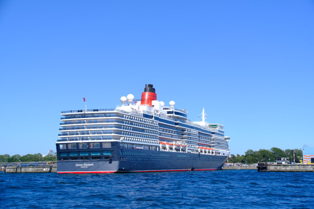 Mittlerweile war es auch schon recht heiß geworden. Ein Eis lieferte noch eine kurze Abkühlung, bevor es auf das Boot ging. Wir fuhren recht langsam aus dem Hafen raus, denn mittlerweile legte das erste der angekündigten Kreuzfahrtschiffe ( die Queen Elisabeth) an. Nach kurzer Sicherheitseinweisung ging es mit dem Katamaran rasant los.
