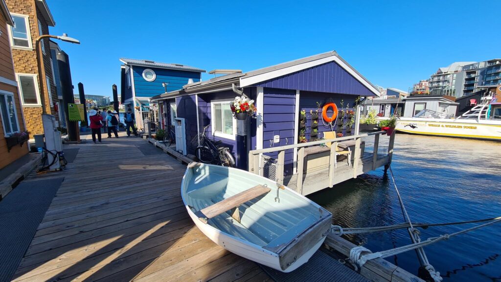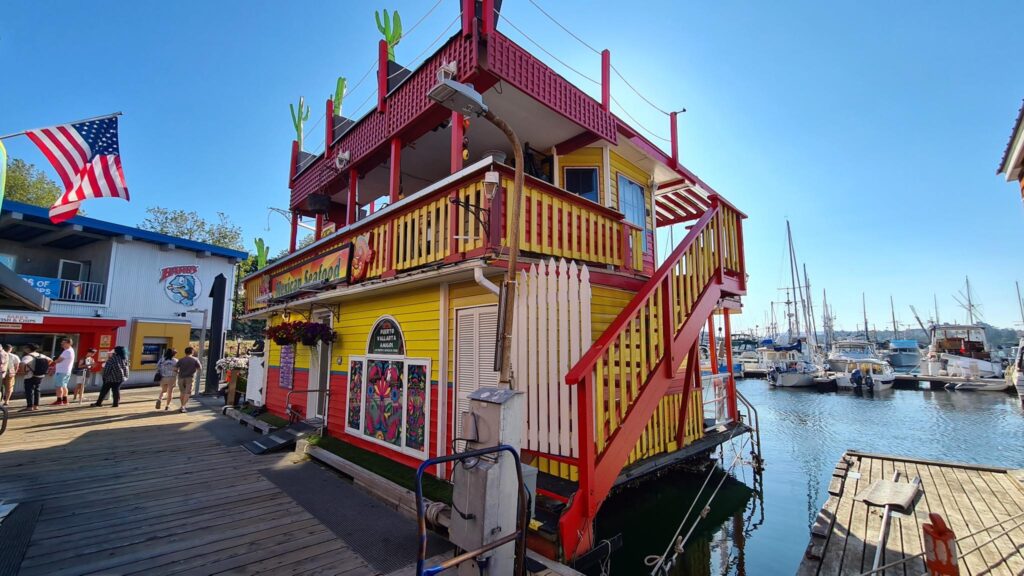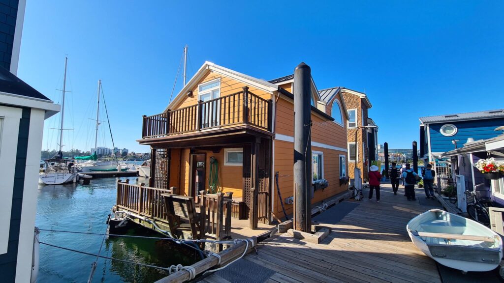 Wieder am Hafen angekommen, wollten wir eigentlich mit dem Wassertaxi Richtung Camper zurück schippern. Wir hatten jedoch die Möglichkeit noch am „Fisherman’s Wharf“ auszusteigen und ein Taxi später weiter zu fahren. Fisherman’s Wharf sind kleine niedliche schwimmende Häuser, vertäut am Kai, an dem ursprünglich früher die Fischerboote andockten. Ob man ständig schaukelnd wohnen möchte ist sicher Geschmackssache 😉. In der Nähe konnten man noch ganz üblich Fish&Chips essen -unser heutiges Abendbrot.
