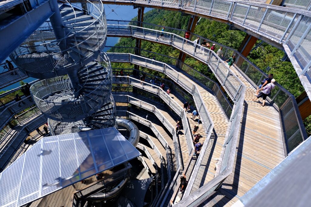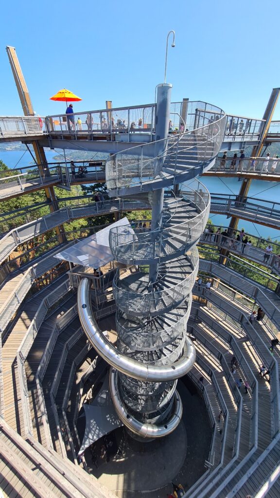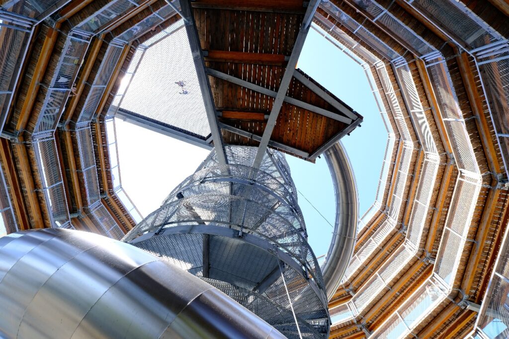 Im Turm gab es noch eine Röhren-Rutsche – für diejenigen, die schneller wieder runter wollten… Wir sind lieber gelaufen 😀.