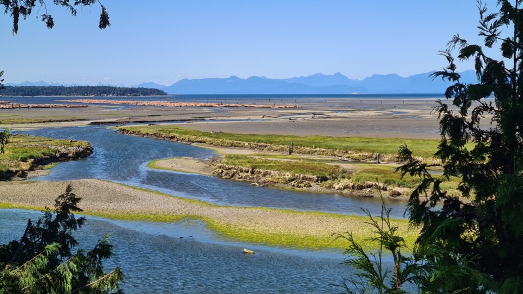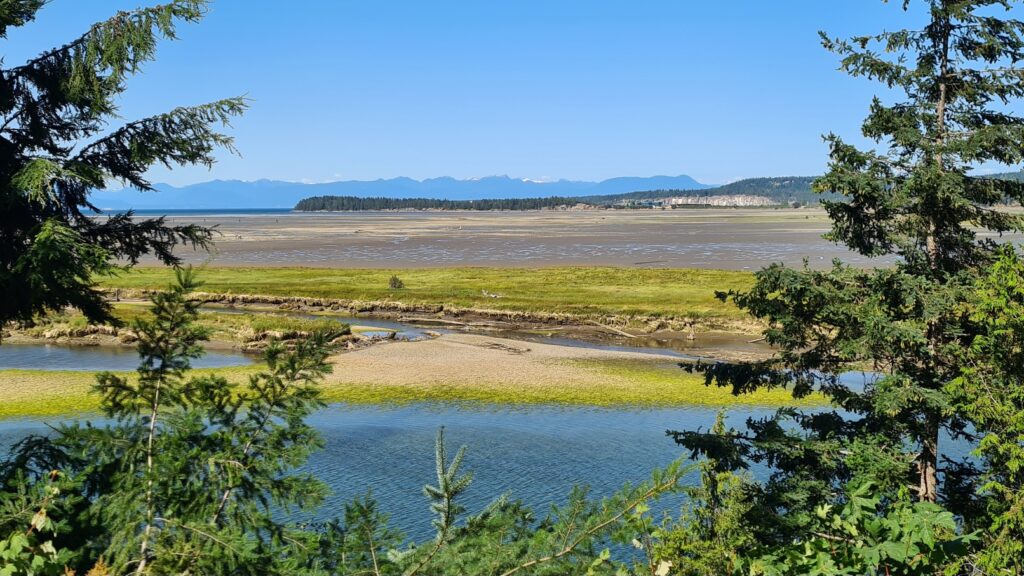 Unser Übernachtungsdomizil der Campground in Nanaimo liegt am Pazifik, genauer am Ufer der Strait of Georgia, eine Wasserstraße, die die Insel vom Festland trennt. Bei unserer Ankunft vermissten wir das Meer. Die Gezeiten erzeugen hier einen Unterschied des Wasserstands von bis zu 3,5 m.