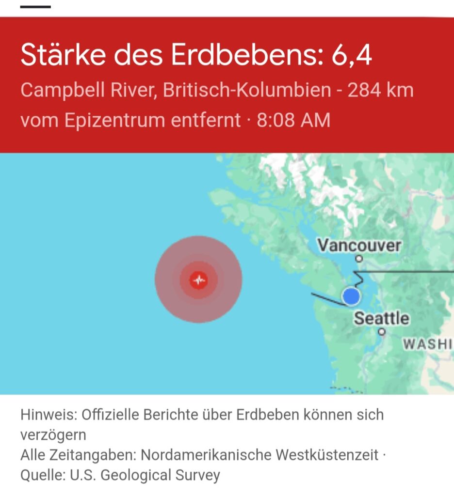 Der Tag startete kurz mit Aufregung. Holger bekam die Info aufs Handy, dass es vor Vancouver Island ein Erdbeben der Stärke 6.4 gegeben hat, wir selbst haben davon nichts mitbekommen. Unser Camper schaukelt ja auch, wenn sich jemand im Bett umdreht. 😀 Wir befragten kurz google und erfuhren, dass dies nicht selten ist. Die Robbe störte das auch nicht 😉.