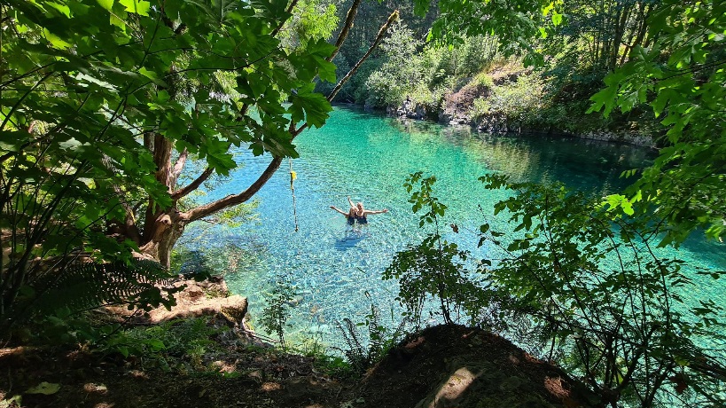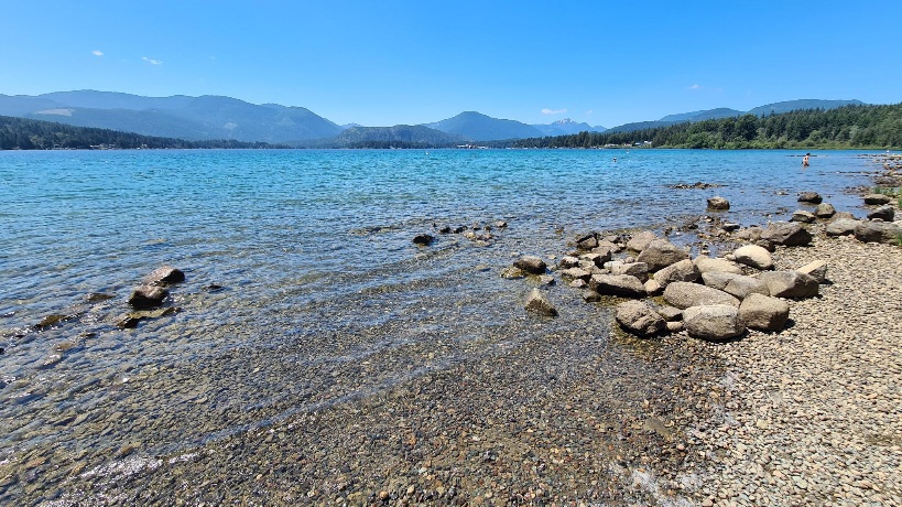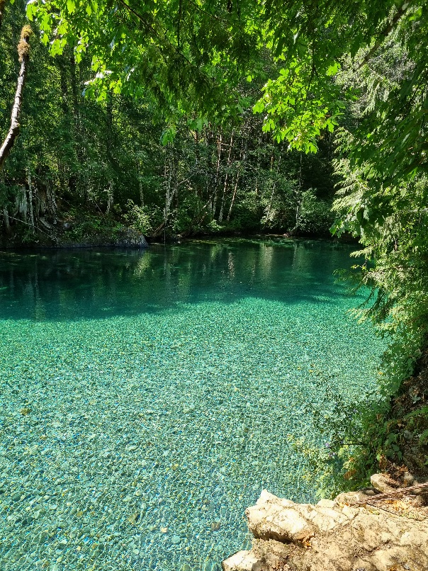 Heute morgen wurden wir mit klopfenden Regentropfen geweckt. Der Himmel weint also wenn wir Abschied nehmen (voll kitschig-aber doch so passend) . Heute geht es wieder zurück nach Nanaimo, den Campingplatz kennen wir bereits. Auf dem Weg gibt es noch einen tollen Rastplatz, diesen haben wir bereits auf dem Hinweg angefahren, jedoch haben wir da das Beste nicht gesehen. Einen kristallklaren See in dem man auch baden kann. Es brauchte einiges an Überredung bis Mariella mit mir ins kalte Wasser ging. Brrrr das war wirklich kalt,aber eine tolle Mutprobe (irgendwie waren wir auch alleine im Wasser).