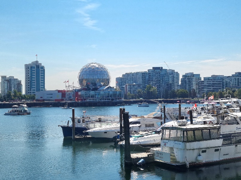 Wir schauten uns das BC Stadion (American Football + Soccer) und den angrenzende Falls Creek (Wasserstraße und Hafen im Stadtzentrum) und den imposanten Kugelbau der Science World (Naturwissenschaftliches Museum für Kinder) an.