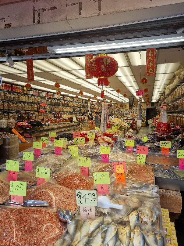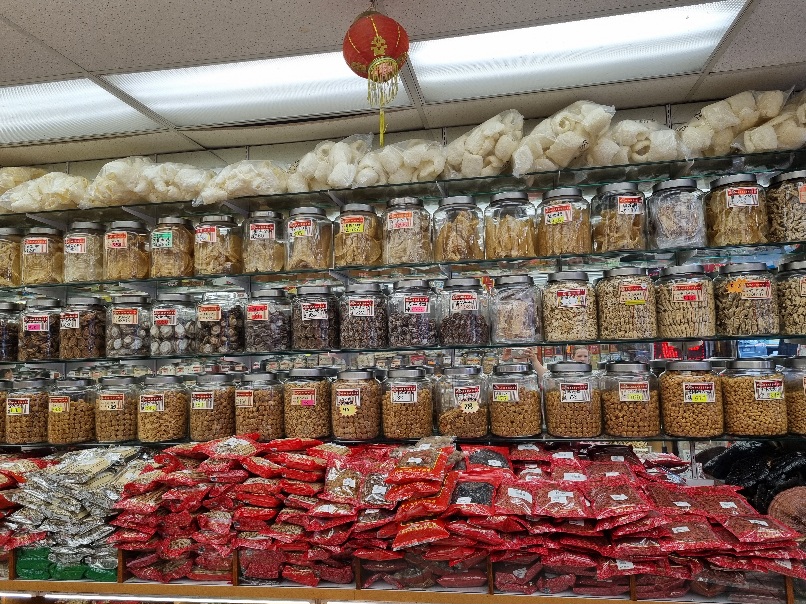Danach liefen wir durch die angrenzenden Stadtteile Chinatown (zweitgrößte in Kanada) und Gastown. Leider kamen wir hier an einigen Drogen-Hotspots vorbei. (teils erschreckende Bilder wie aus einem Zombie-Film). Das ließen wir schnell hinter uns und bestaunten das große Eingangstor von Chinatown und die interessanten Geschäfte und chinesischen Apotheken in den allerlei teils undefinierbare getrocknete Dinge in großen Glasbehältern angeboten wurden.