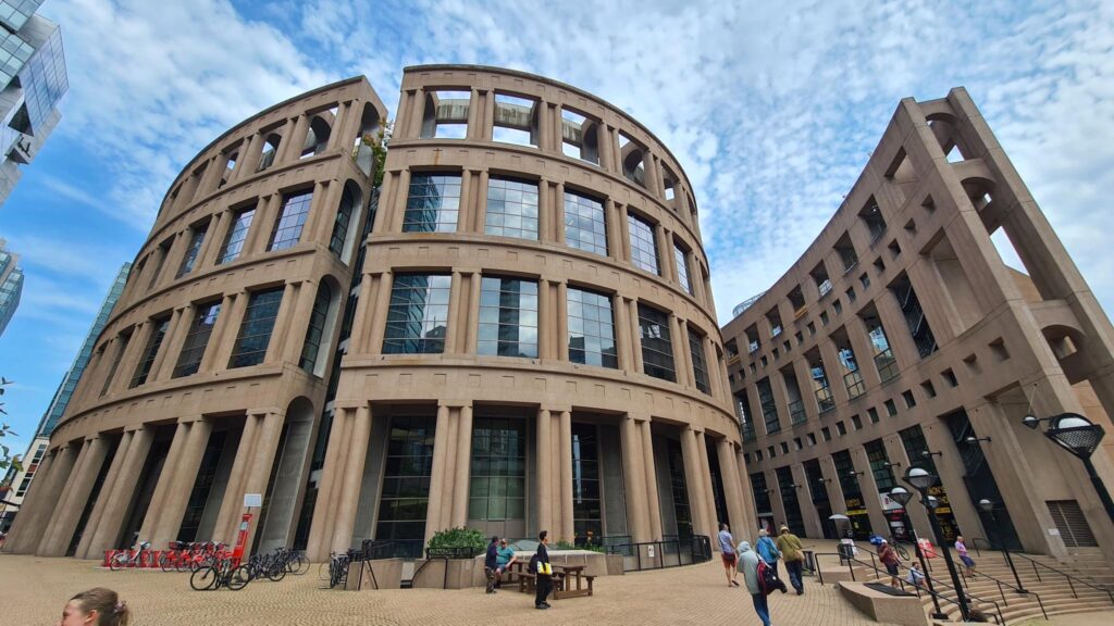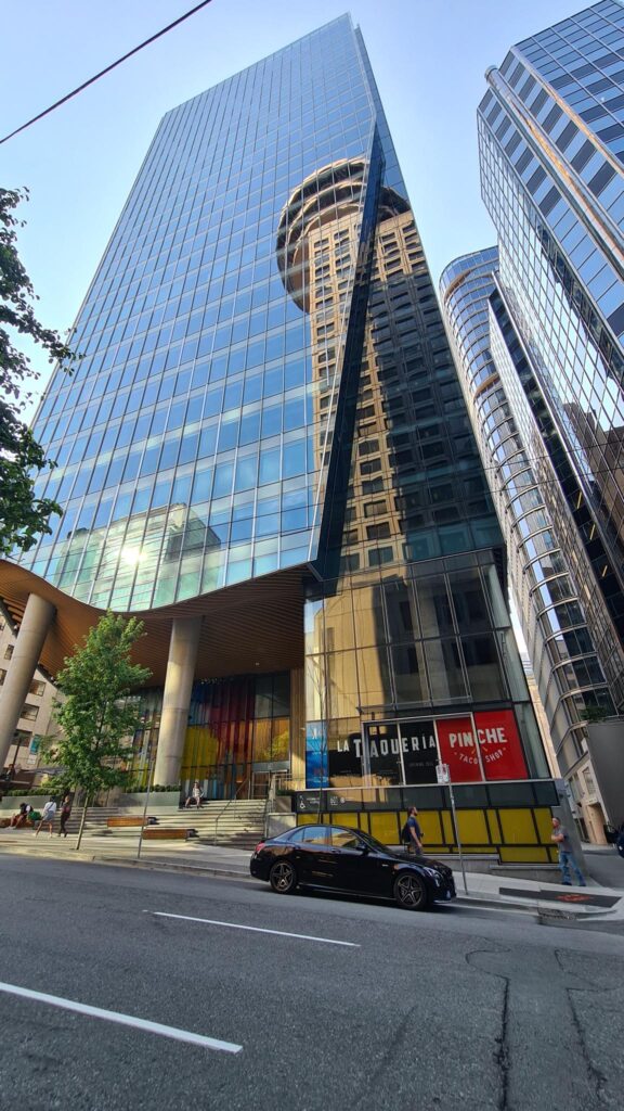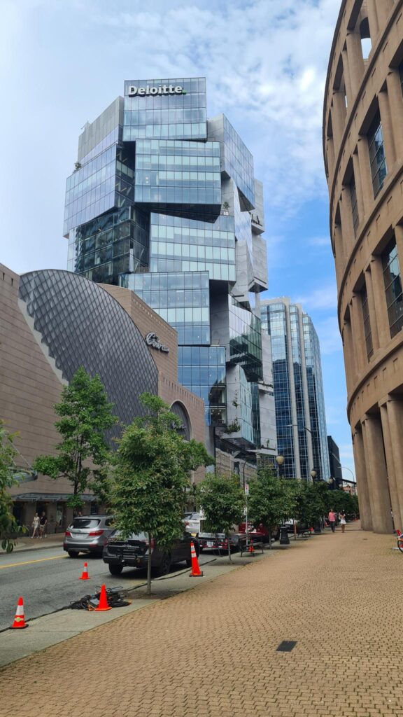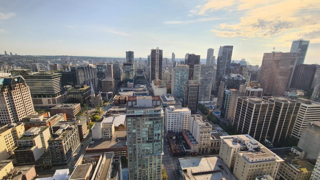 Nach einem weiteren Stop an der Vancouver Public Library (wurde im Baustiel einem Kolloseum nachempfunden) ließen wir uns noch zum Vancouver Lookout bringen. Das ist ein Turm mit einer Aussichtsplattform, von der man die ganze Stadt 360 Grad überblicken kann. Das war unser abschließendes Highlight.