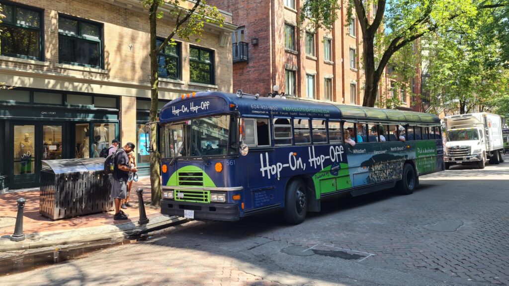 Nach dem wir gut und lange geschlafen hatten, starteten wir den Tag mit einem Frühstück aus den Resten, die wir vom Camper mitgenommen hatten. Wir machten uns dann auf zur ersten von 14 Stationen unserer Hop-On Hop-Off Tour durch die Stadt. Die Station war gar nicht so einfach zu finden (das gesuchte Schild der Haltestelle war 20x20cm groß). Wir sahen letzten Endes dann eher den Bus als das Schild und mussten einen kurzen Frühsport einlegen, um ihn zu bekommen.