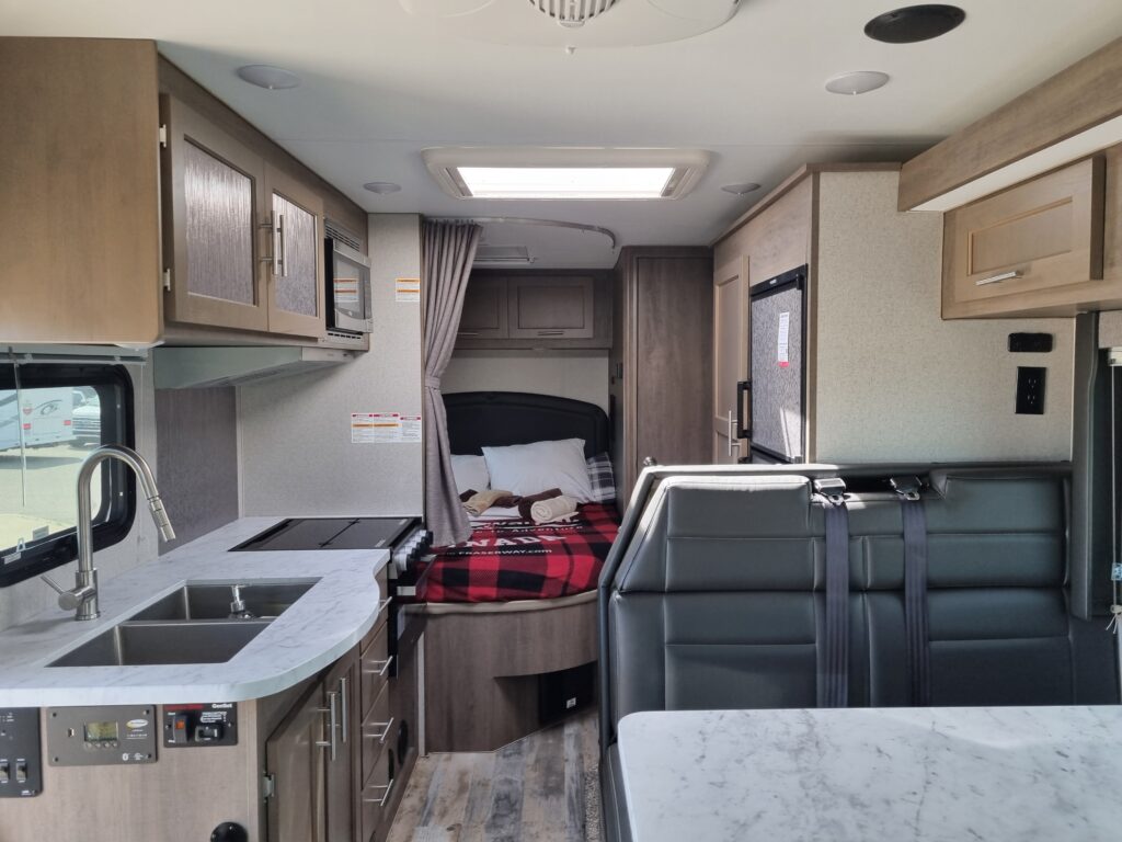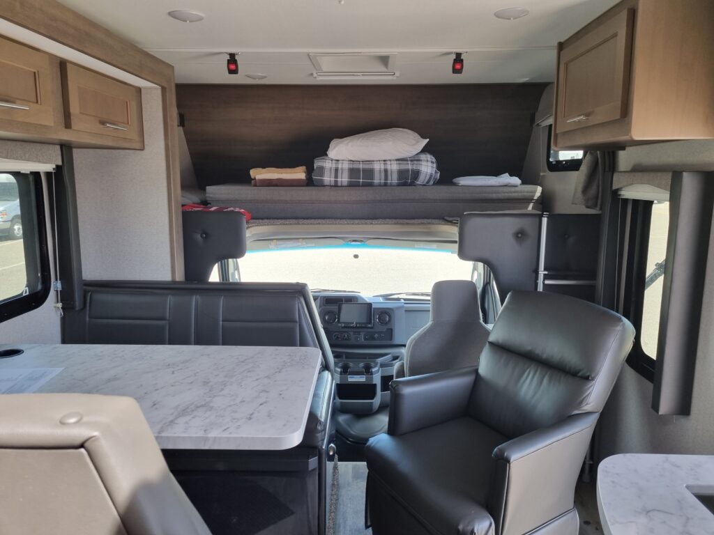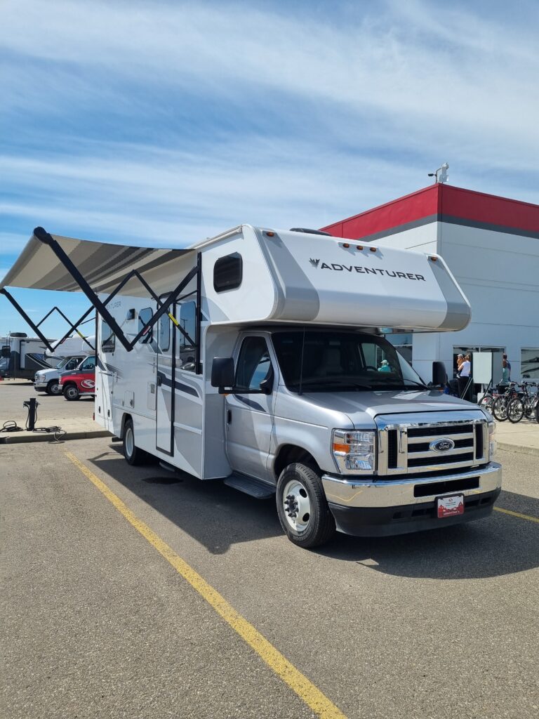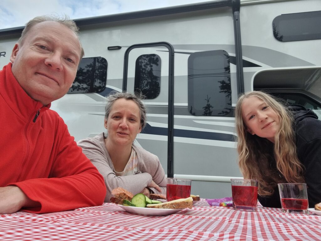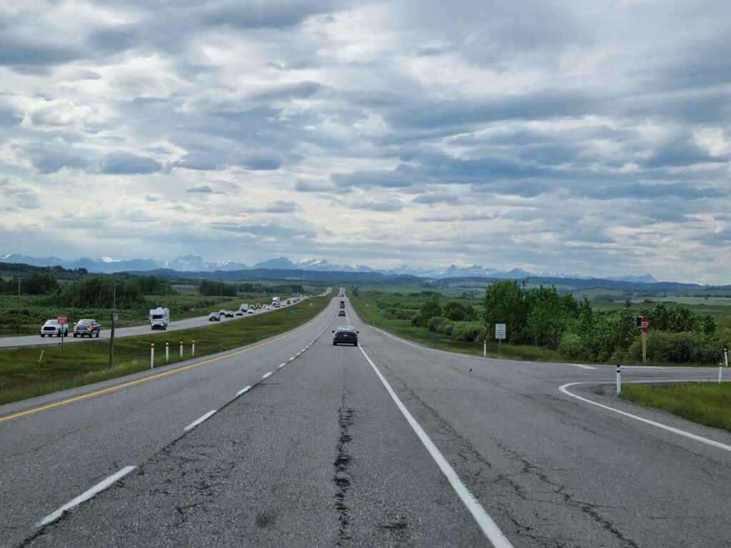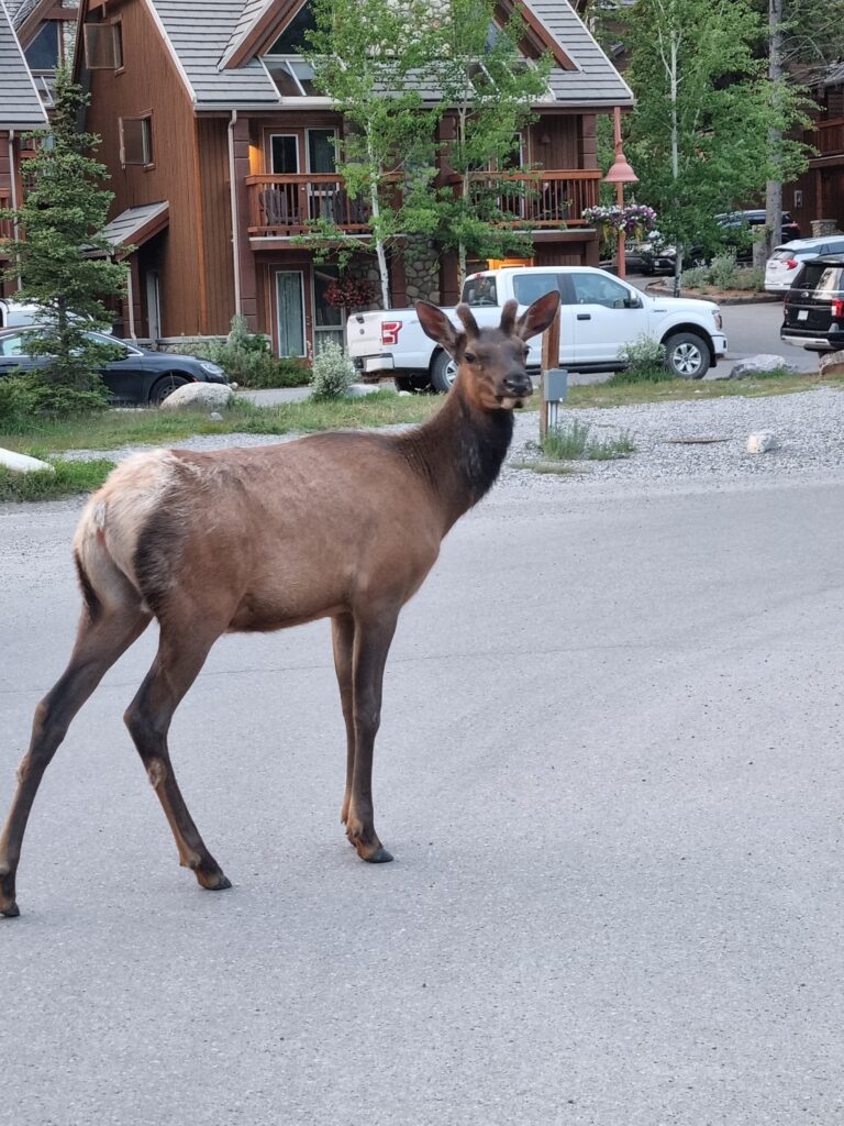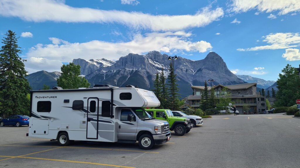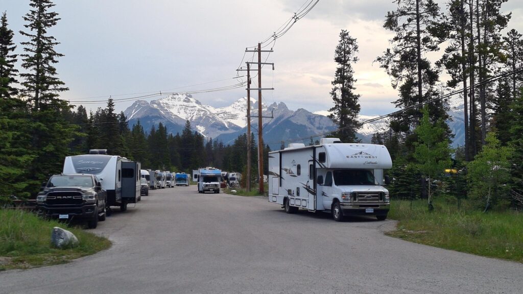 Danach ging es ans Erkunden unsere neuen 4Wände und das Einräumen. Der Inhalt der 4 Koffer fand seinen Platz, auch wenn wir danach nicht mehr wussten wo wir was versteckt hatten. Nach einer kurzen Stärkung zum Mittag, stand der Großeinkauf an. Wir gingen ausgestattet mit einer langen Einkaufsliste zu Save On Foods und durchkämmten alle Regalreihen. Nach ca 2Stunden war wir fertig und nun ging es wieder ans Verstauen und Kühlschrank füllen. Nun ging es endlich los. Holger fuhr den Camper und Claudia gab Tipps zu neuen Strassenschildern. Wir fuhren immer mit Blick zu den Rockie Mountains und erreichten gegen 19Uhr den Campground Tunnel Mountain Village II in Banff. Ein recht großer Campground. Schnell wurden wir eingecheckt und belehrt niemals Essen unbeaufsichtigt liegen zu lassen, um Bären nicht anzulocken.