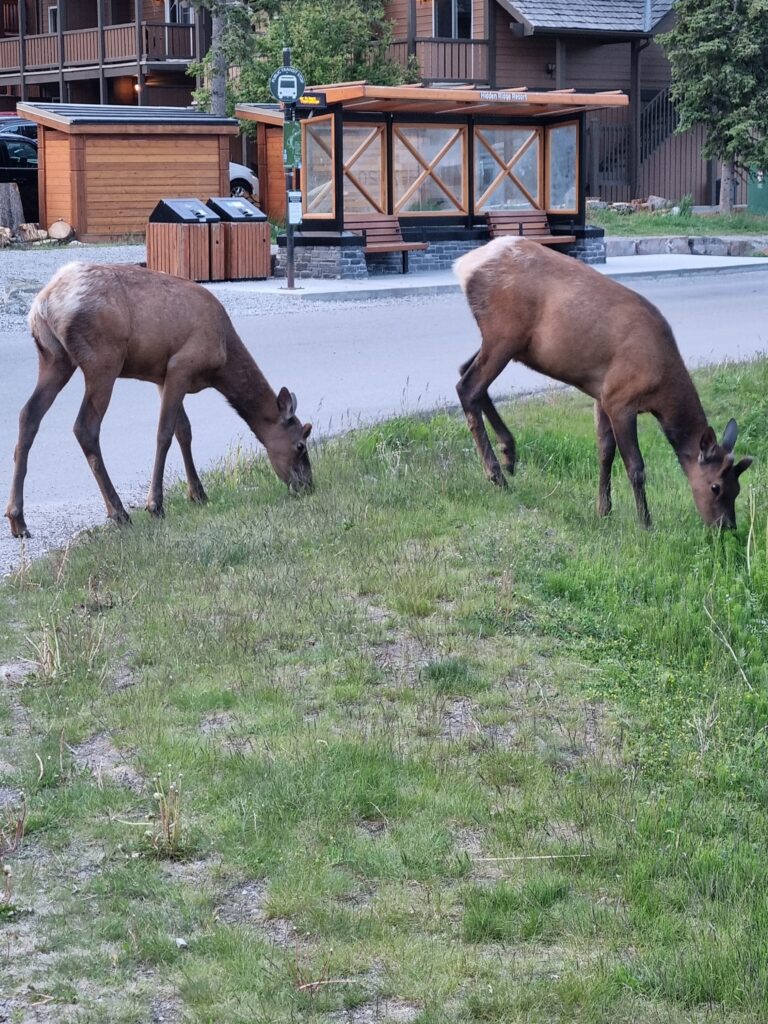 Soeben kamen noch 2 Gäste vorbei und erfreuten sich am satten grünen Gras. Eine kurze google-Anfrage ergab, dass dies Elk waren, aber keine Elche.