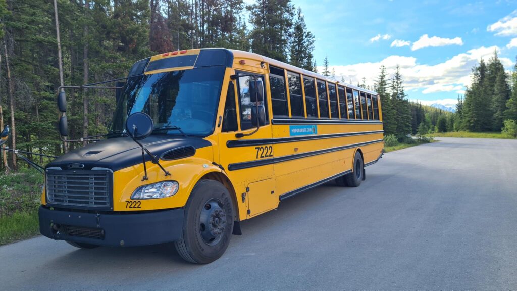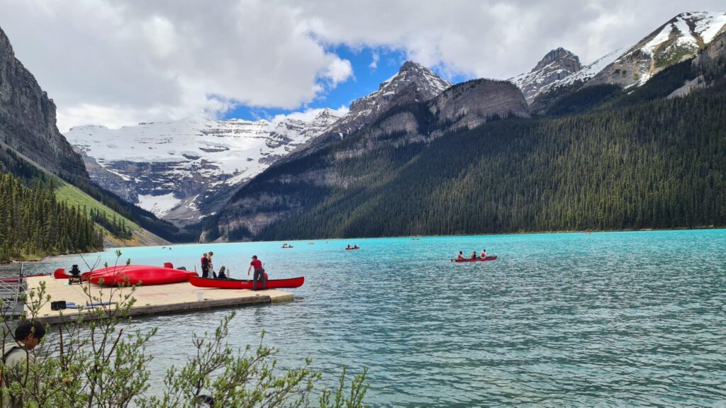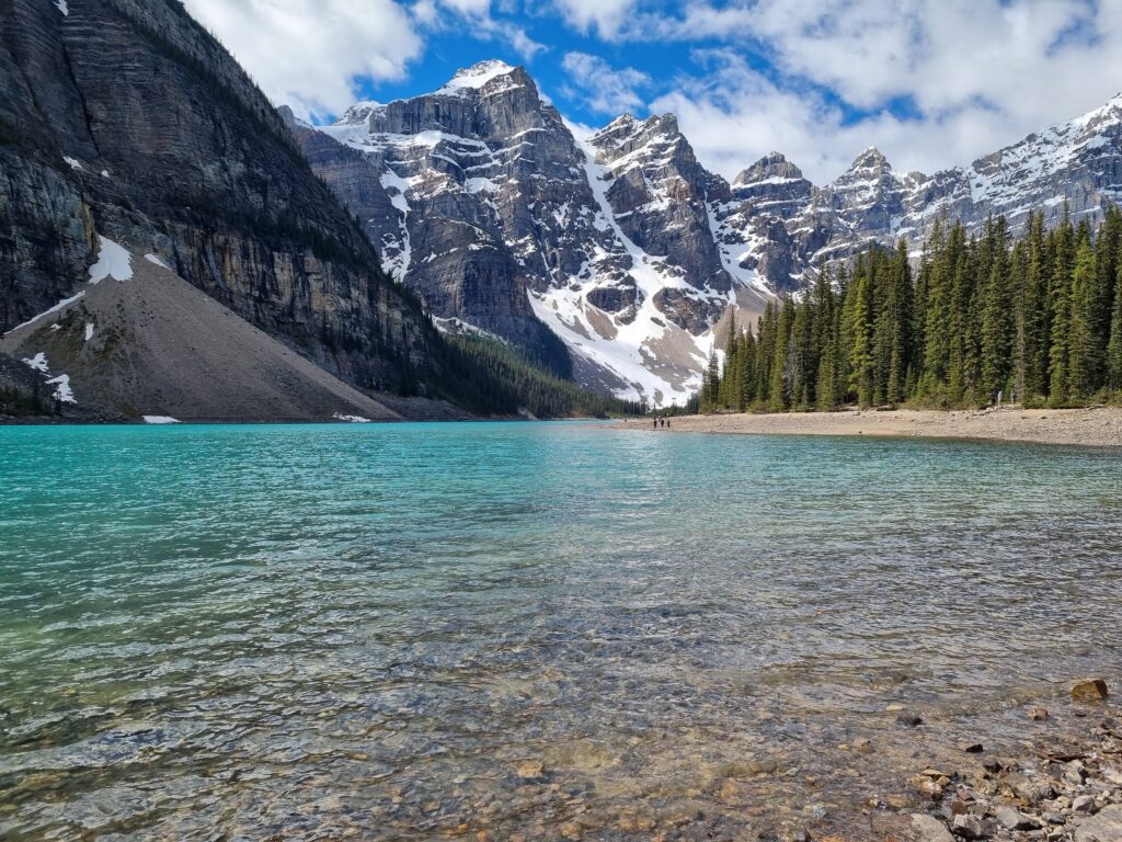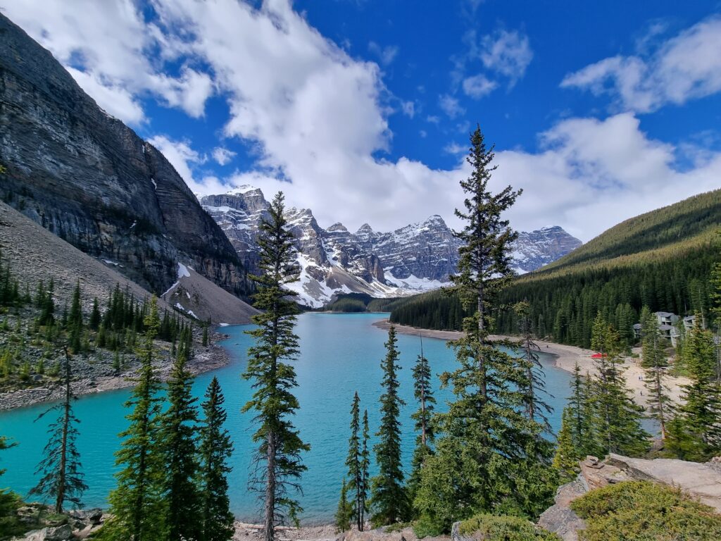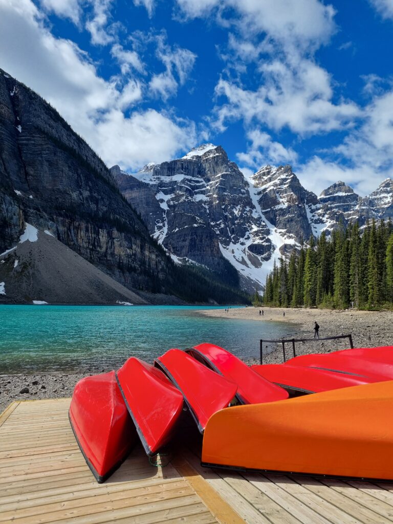 Auf geht’s zu den ersten Höhepunkten unserer Tour. 2 der bekanntesten Seen Kanadas warten auf uns, Moraine Lake und Lake Louise. Hierfür klingelte der Wecker bereits 5.50Uhr. Vor über 6 Monaten haben wir uns einen Platz in einem amerikanischen Schulbus gebucht.Dieser fährt uns heute zu den beiden Seen. Nach vielen Erklärungen von Jeff und 2 Fotostops erreichen wir Moraine Lake.