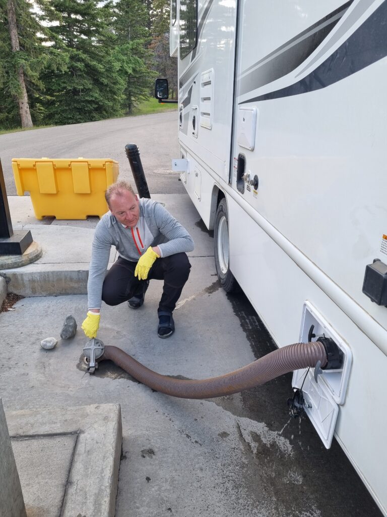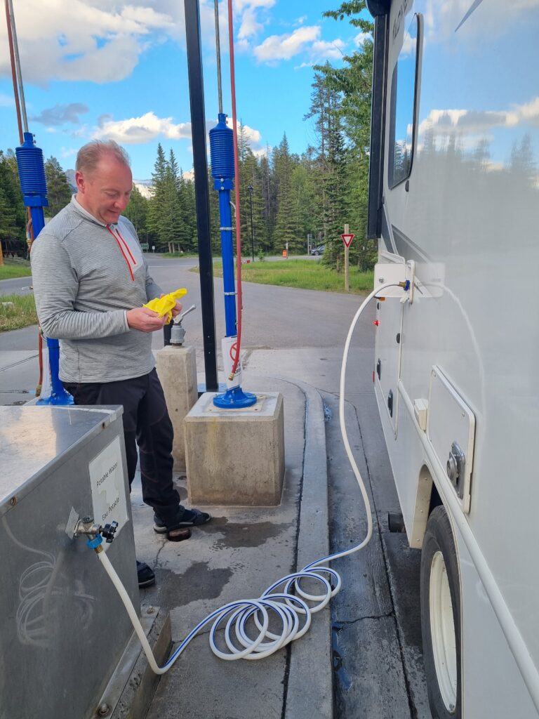 Am Abend sind wir mit dem Camper das erste Mal zur Dump Station gefahren. Hier tankten wir frisches Wasser auf und entleerten unser Abwasser.