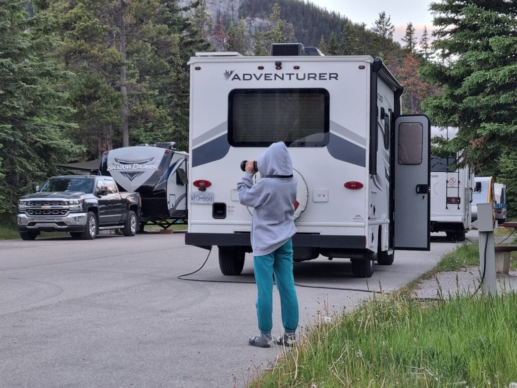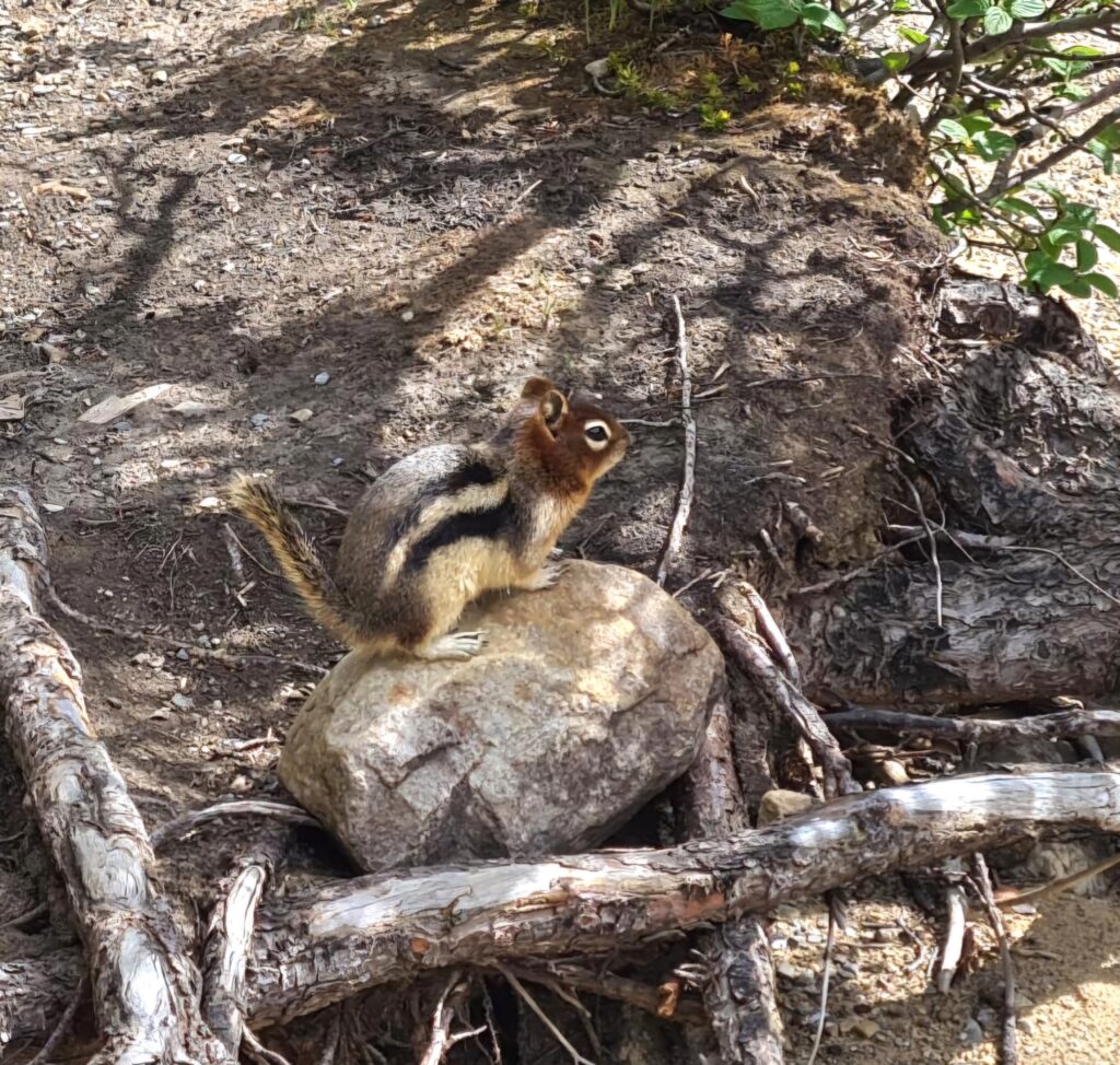 Zurück am Platz beobachteten wir wieder Wapitis (diesmal als Familie mit 2Kindern) und die kleinen Squirrels (Hörnchen).