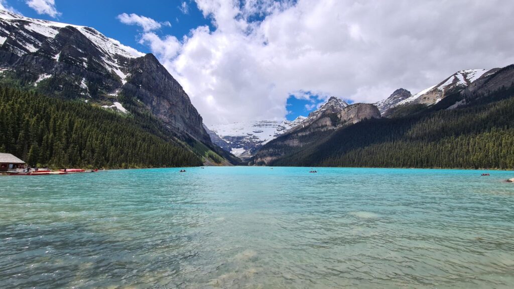 Vom Moraine Lake ging es zum 2. tollen See, dem Lake Louise. Wir dachten ja, wir haben schon viele Leute am Moraine Lake gesehen, aber das Menschaufkommen hier toppte wirklich alles. Auch hier kraxelten wir 1.3km nach oben um einen Aussichtspunkt zu erreichen. Dieser Weg hat sich wirklich gelohnt. Die Farbe des Sees ist bezaubernd.