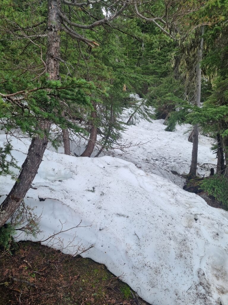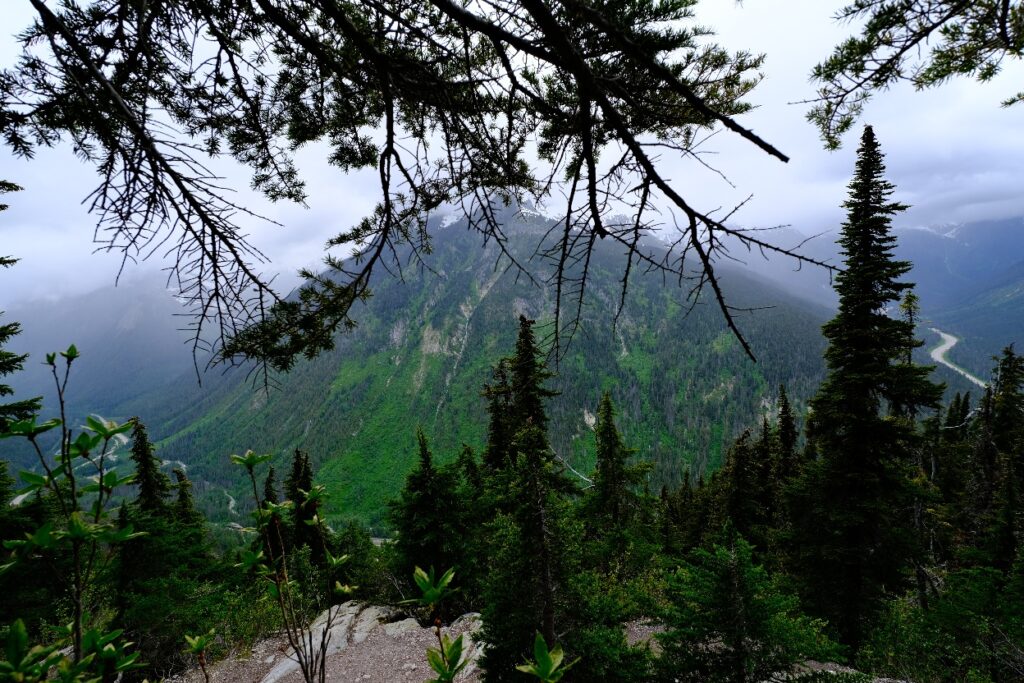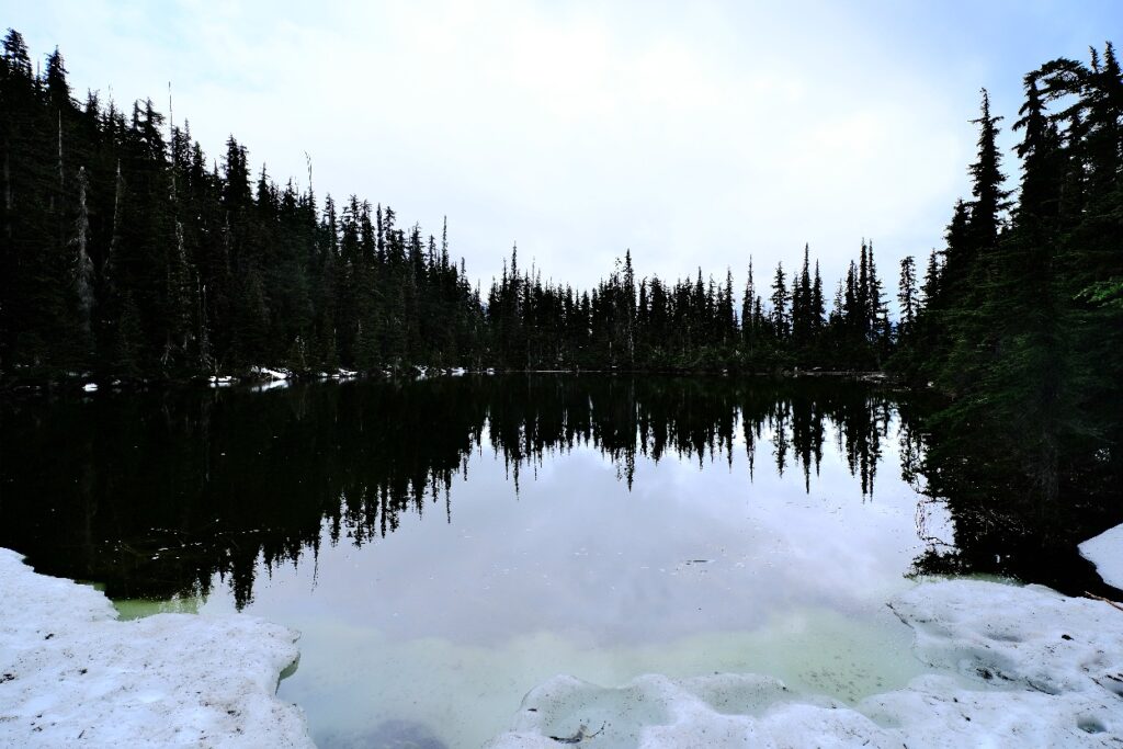 Hallo an alle Mitleser. Heute war wieder etwas Ausschlafen möglich, das Wetter sollte regnerisch werden. Wir sind immernoch auf dem Illecillewaet Campground und genießen die herrliche Ruhe und die Natur. Da es am Morgen noch trocken war sind Holger und ich noch zu einer kleinen Tour losgezogen. Ziel war der Marion Lake. Die Tour war 6,5km lang und es gab wieder 400 Höhenmeter zu bewältigen. Der Weg führte durch satte grüne Wälder und wir begegneten niemanden, auch keinem Bären.
