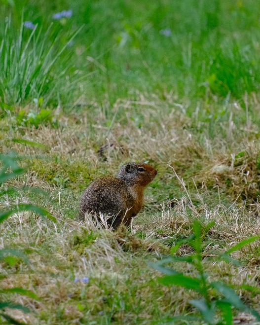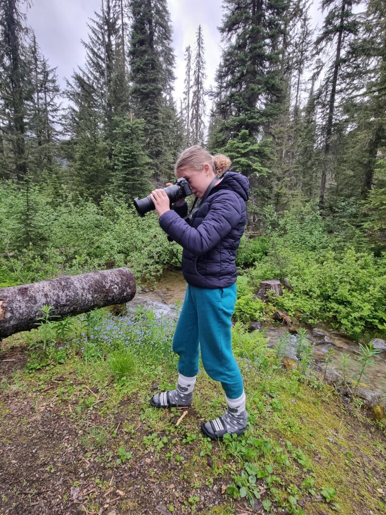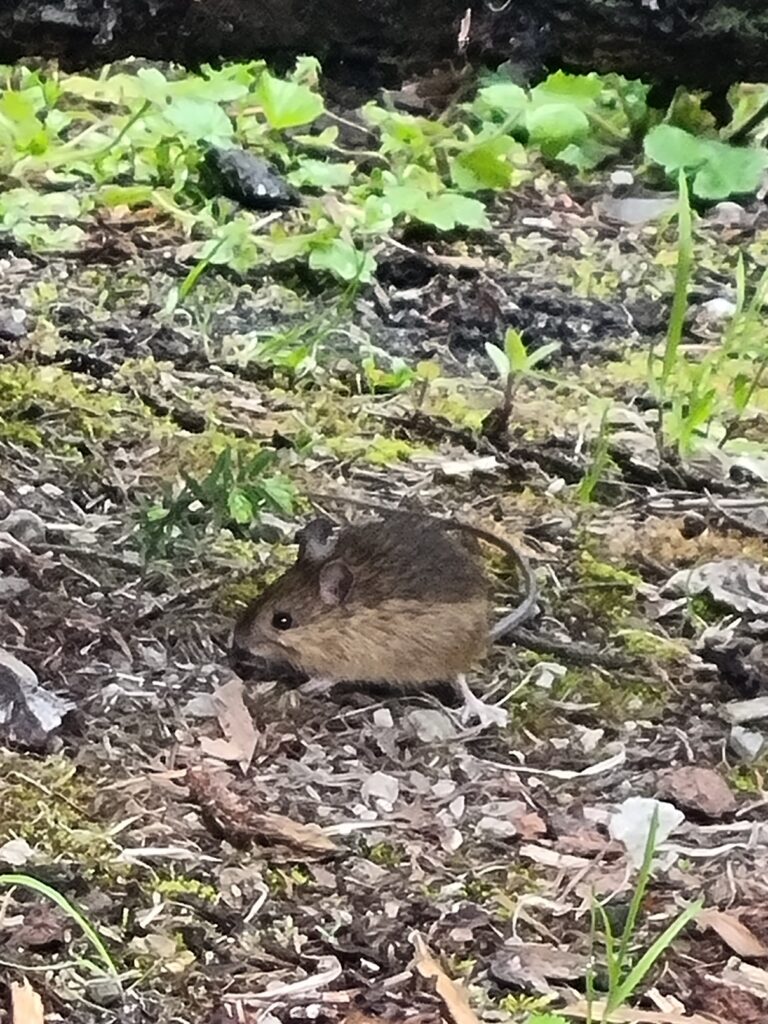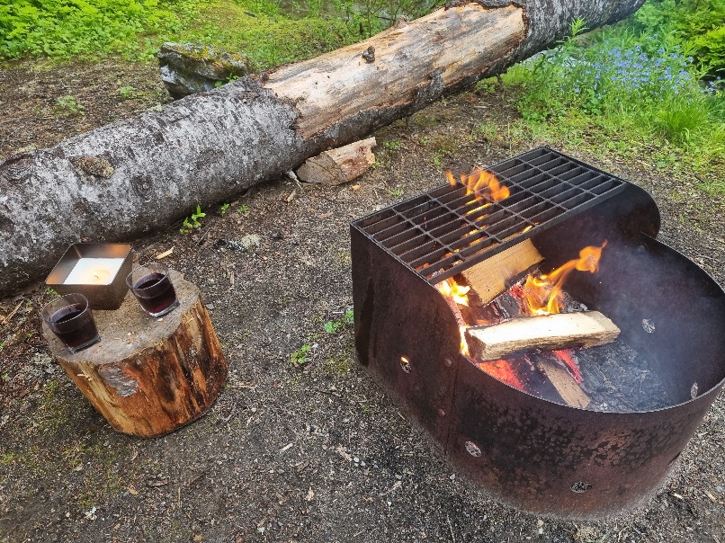 Belohnt wurden wir mit einem tollen romantisch gelegenen See, um den es noch Schnee gab. Die Aussicht war nicht so überwältigend. Die Bergspitzen waren hinter tief hängenden Wolken versteckt. Da es zu tröpfeln begann, machten wir uns auf den Heimweg. Das Tröpfeln wurde zu kräftigem Regen, aber dank der Regencapes war es für uns kein Problem. Im Camper angekommen war heute Nachmittag ausruhen mit Schlafen, Hörbuch hören und Lesen angesagt. Den Abend lassen wir mit Lagerfeuer ausklingen und beobachten eine Maus, diese hüpft hier wild ums Lagerfeuer.